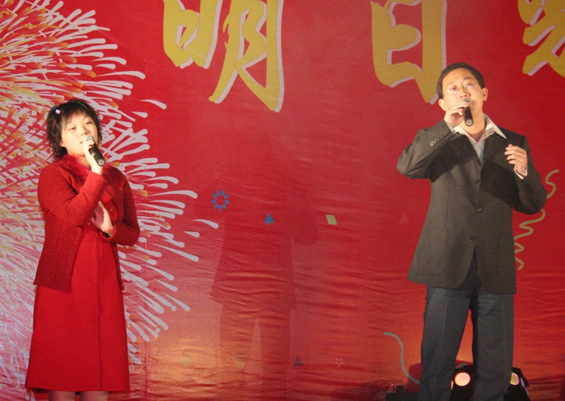 最后,在深情悠扬的《难忘今宵》歌声中,舞台两侧飘下的《科技大富》对联:“科技者树科技风科技之家重科技,大富人做大富事大富公司育大富”,宣告本场晚会圆满结束。