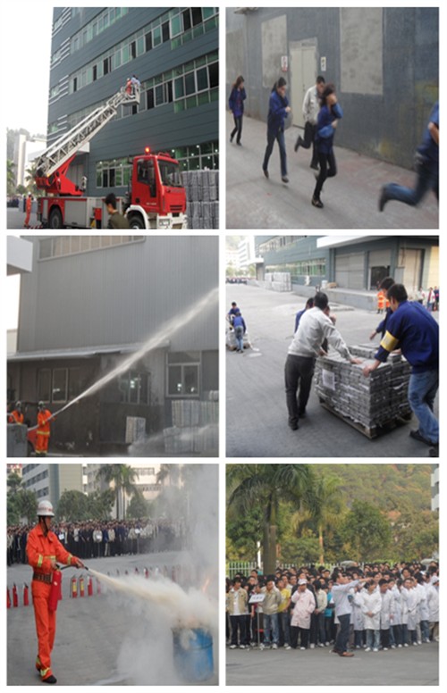 2010年12月23日16时,官方网站入口公司仓库及A栋二楼楼道“冒出大量浓烟”,现场人员立即向大门值班室电话报告,经公司安全主任现场指挥确认后,公 司立即启动应急救援程序。不到一分钟,厂区消防警报响起,各部门人员在疏散人员的引导下,从预设的路线和安全通道紧急疏散。与此同时,由机加部主管带队的 区域义务消防员携带灭火器材到达起火部位控制火情,紧接着内部义务消防队、搜救组、医疗组、抢险救援组等陆续携带装备赶赴现场实施救援。10分钟,由石岩 消防中队曾队长带队指挥的消防车到达公司预定区域……一切步骤环环相扣、井然有序。