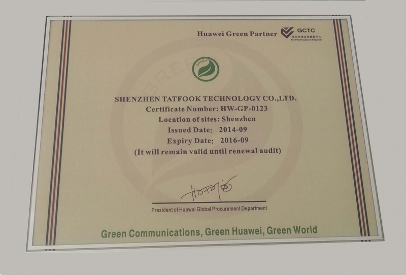 2014年9月,公司荣获华为技术有限公司绿色合作伙伴认证,该认证意味着,官方网站入口在产品内容和生产过程的绿色环保性业已经达到或超过了华为的严格环保要求,并得到了后者的充分肯定。华为”绿色合作伙伴”项目旨在鼓励供应商尽可能降低所部件生产所造成的环境影响。“华为绿色合作伙伴”认证要求合作伙伴不采用被禁止或被控制使用的有毒材料、选用环保材料,以及制定环境评估和行动计划。为了获得华为“绿色合作伙伴”认证,供应商必须满足上述要求,并通过华为的现场审核。在经过严格的评估过程后,官方网站入口被授予该认证。此外,公司已连续5年成为华为金牌供应商,并屡次获得客户颁发的多项技术奖等。