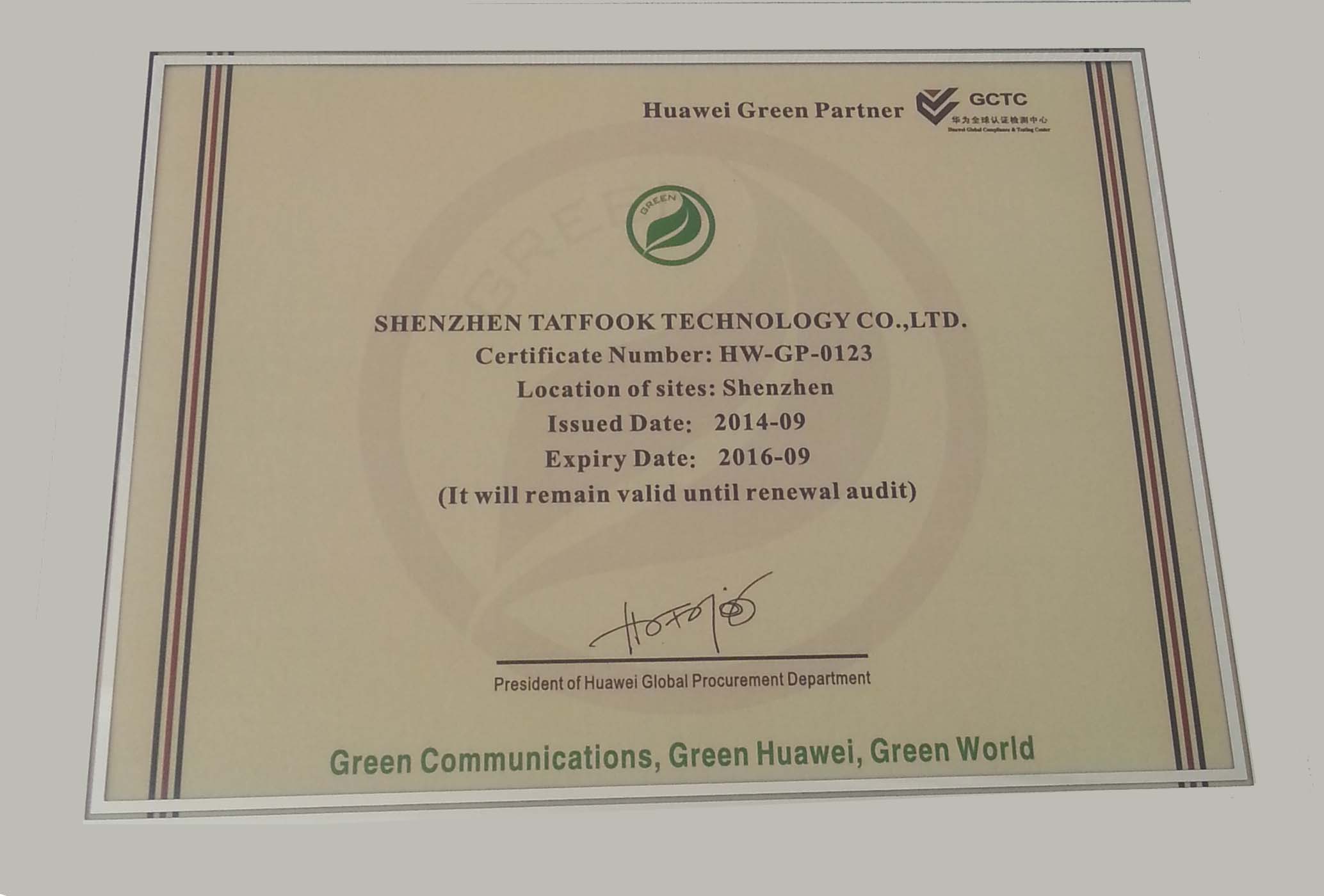 2014年9月,公司荣获华为技术有限公司绿色合作伙伴认证,该认证意味着,官方网站入口在产品内容和生产过程的绿色环保性业已经达到或超过了华为的严格环保要求,并得到了后者的充分肯定。华为”绿色合作伙伴”项目旨在鼓励供应商尽可能降低所部件生产所造成的环境影响。