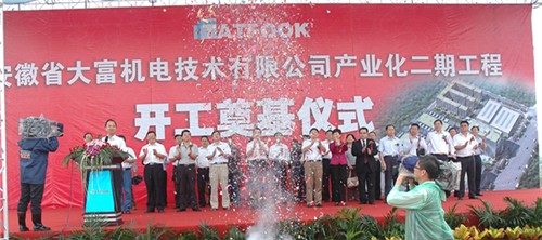 9月8日上午9点58分,伴着隆隆的礼炮声与欢快的迎宾曲,安徽省大富机电技术有限公司产业化二期工程开工奠基仪式在安徽怀远经济开发区隆重举行。